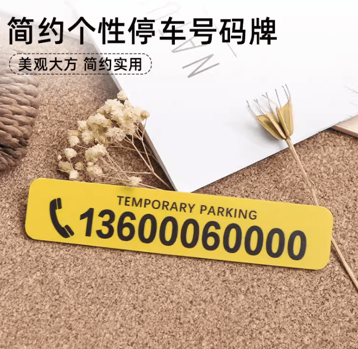 - Temporary-parking phone-number plate. When you need to park where your car could hinder someone, like a roadside, you place this plate with your phone number on the dashboard/windshield of your car so that you could be reached. I checked Taobao and it comes in an insane variety of options—from elegant to cutesy.