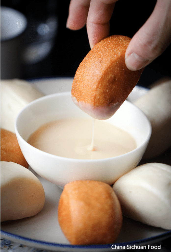 Let’s just talk about food! We encountered mantou back when Dad and baby Lin didn’t have enough money to eat as LPG deliveryman so Momo only planned to eat mantou—it’s just a plain bun, no filling inside. Here, it’s deep fried so it has a crisp, slightly greasy texture—like a donut—and goes well dipped in condensed milk.
