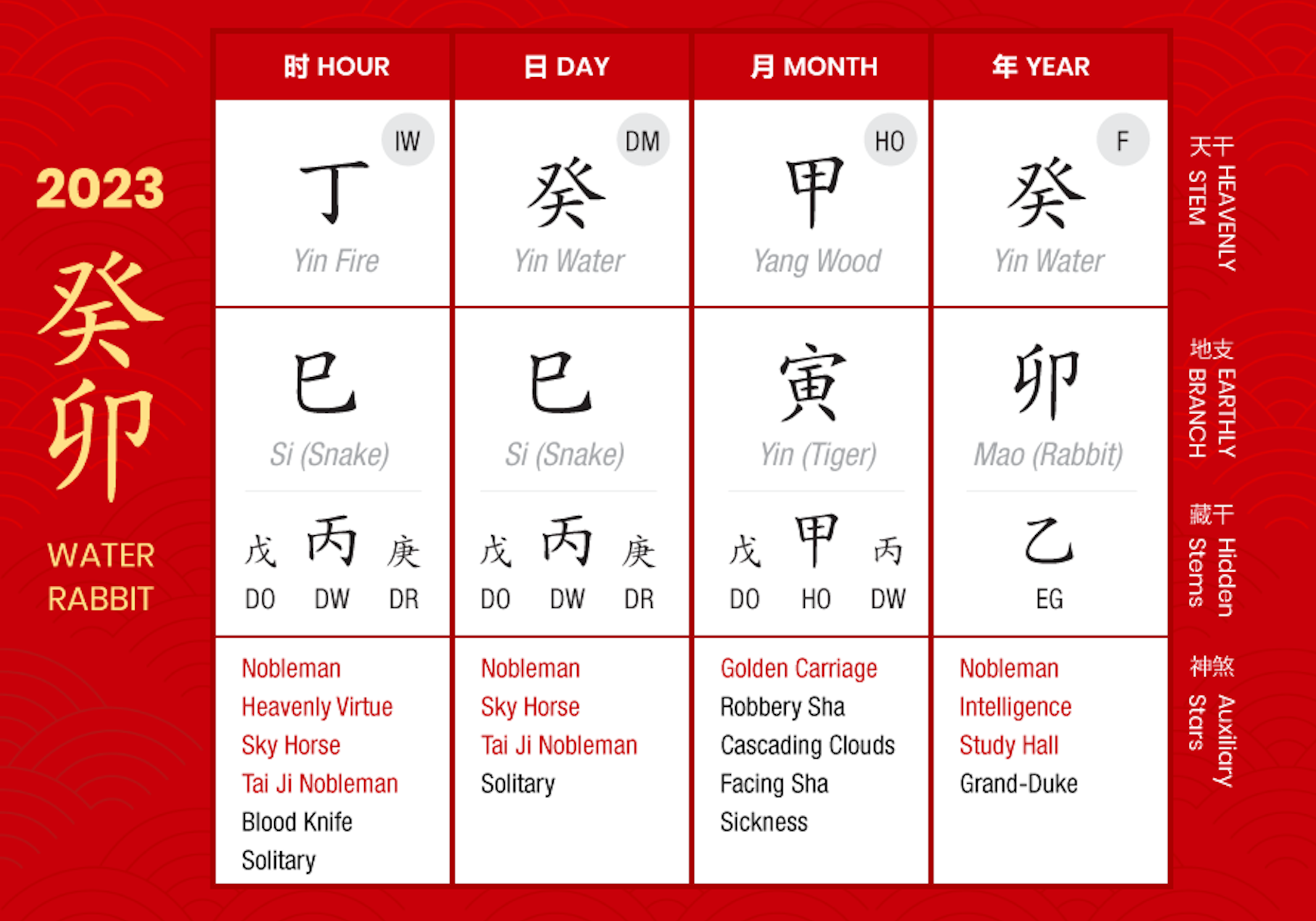 T/N: We’ve been talking and talking about the ‘eight characters’ and I never showed you guys what it was. The eight characters or bazi would be attributes that correspond to a person’s birth year, month, day, and hour. An Rugu can ‘read’ a person’s eight characters just by looking at their faces—but she’s special that way. The more normal way is to have it written down and interpret the attributes as it relates to something—career, love, health etc.