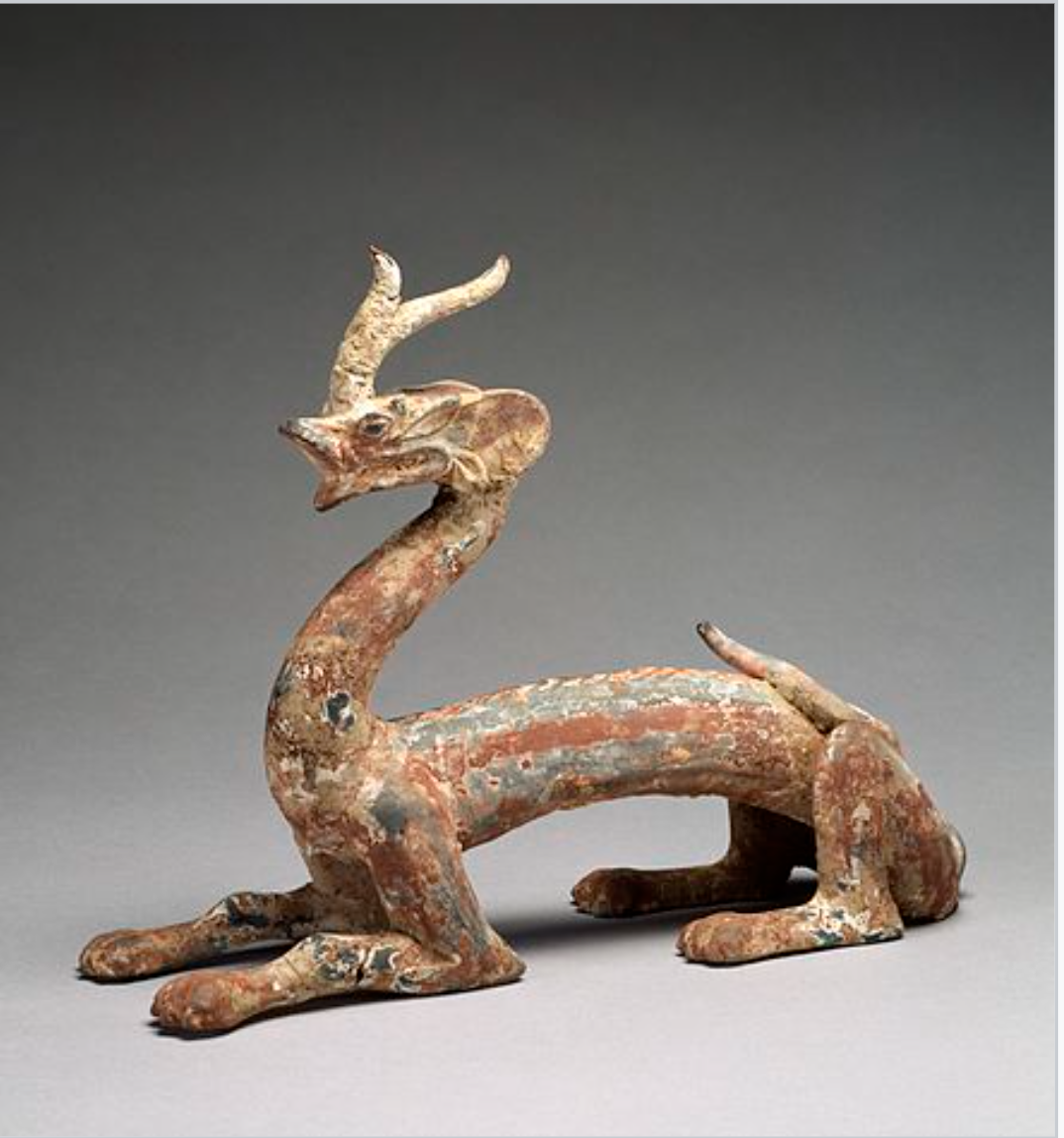 - Qilin is a sacred hooved creature that is said to appear with the imminent arrival or passing of a sage or illustrious ruler. It has dragon-like features, antlers, scales, and the body of a deer or an ox. ↩︎