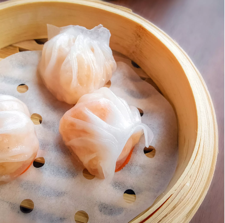 Crystal shrimp dumplings. The have very thin, translucent skin wrappings and are about the size of a golf ball. Very yummy.